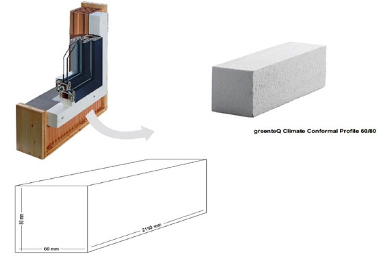 1. Основен носещ профил с размери 60×80 мм. – greenteQ е нов вид изолационен материал, който съчетава най-висока степен на твърдост с най-добрите характеристики на термоизолация ( прилича на стиропор ). Лесният и надежден монтаж се постига, чрез високата пластичност. Въпреки високата си плътност, удължението при скъсване е над 10%. Това означава, че неравностите по основата се компенсират без щети по профила – изпъкнали области като малки камъчета потъват в материала, без да причинят пробиване на компонента. Профилът позволява бързо да се изведе акумулираната вътре влага и не променя размерите си при промяна условията на външната среда, устойчив на замразяване и размразяване.