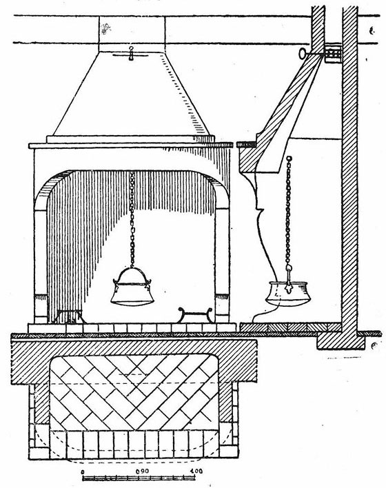 Старата селска къща има само едно огнище в общото помещение – “къщи”, направено по най-примитивен начин. Над огнището започва широк комин, който преминава през тавана и покрива. На това огнище се готви, с него се отоплява и помещението. Отоплението е недостатъчно, защото както газовете от горенето, така и топлият въздух излизат през този широк комин, който няма възможност да се затваря. Сега (1950 г.) огнището се оформя като оджак (камина).