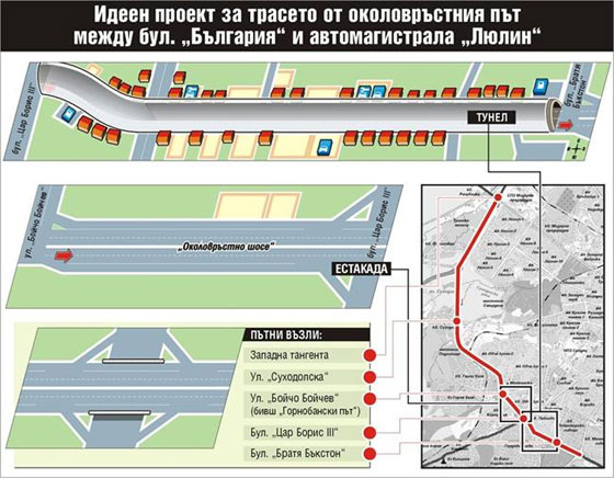 Околовръстното влиза в тунел след „Бояна“ до бул. „Цар Борис III
