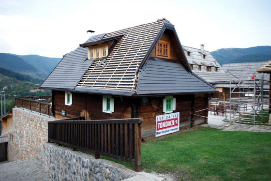 Сътрудничеството между Tondach в Република Сърбия и професор Емир Кустурица започва през 2012 година със саниране покрива на централната сграда (рецепцията) по проекта на световноизвестния режисьор Дървенград. До тогава покривът е бил покрит с материал, наподобяващ дървени шиндли, недостатъците, на които са били известни, но авторът е искал да създаде автентично копие на старото строителство.