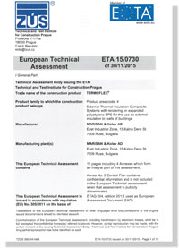 Като отговорен производител, ясно осъзнаващ нуждата от това, пазарът да получава само и единствено продукти от най-високо качество, Марисан акредитира своите топлоизолационни системи съгласно изискванията на международната спецификация ETAG 004. По този начин, тяхното качество и надеждност, се гарантират от следните експертни оценки:
