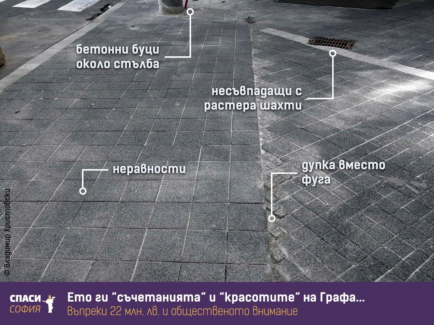 От организацията пуснаха и нагледна анимация за технологията, по която се редят паветата по „Графа“, обясняваща защо все не им се получават ремонтите…
